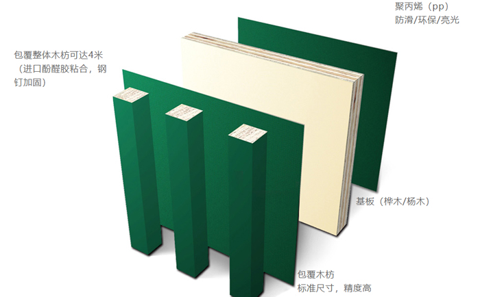 The plastic covered square column formwork product is made of high-quality birch and poplar wood as the substrate, covered with PP plastic film, and has the high-quality characteristics of both wooden and plastic formwork. The main keel wooden beam is bonded with imported phenolic adhesive and fixed with steel nails to form a strong wooden beam support, which is then used to fix the square column formwork plate with clamps for concrete pouring.